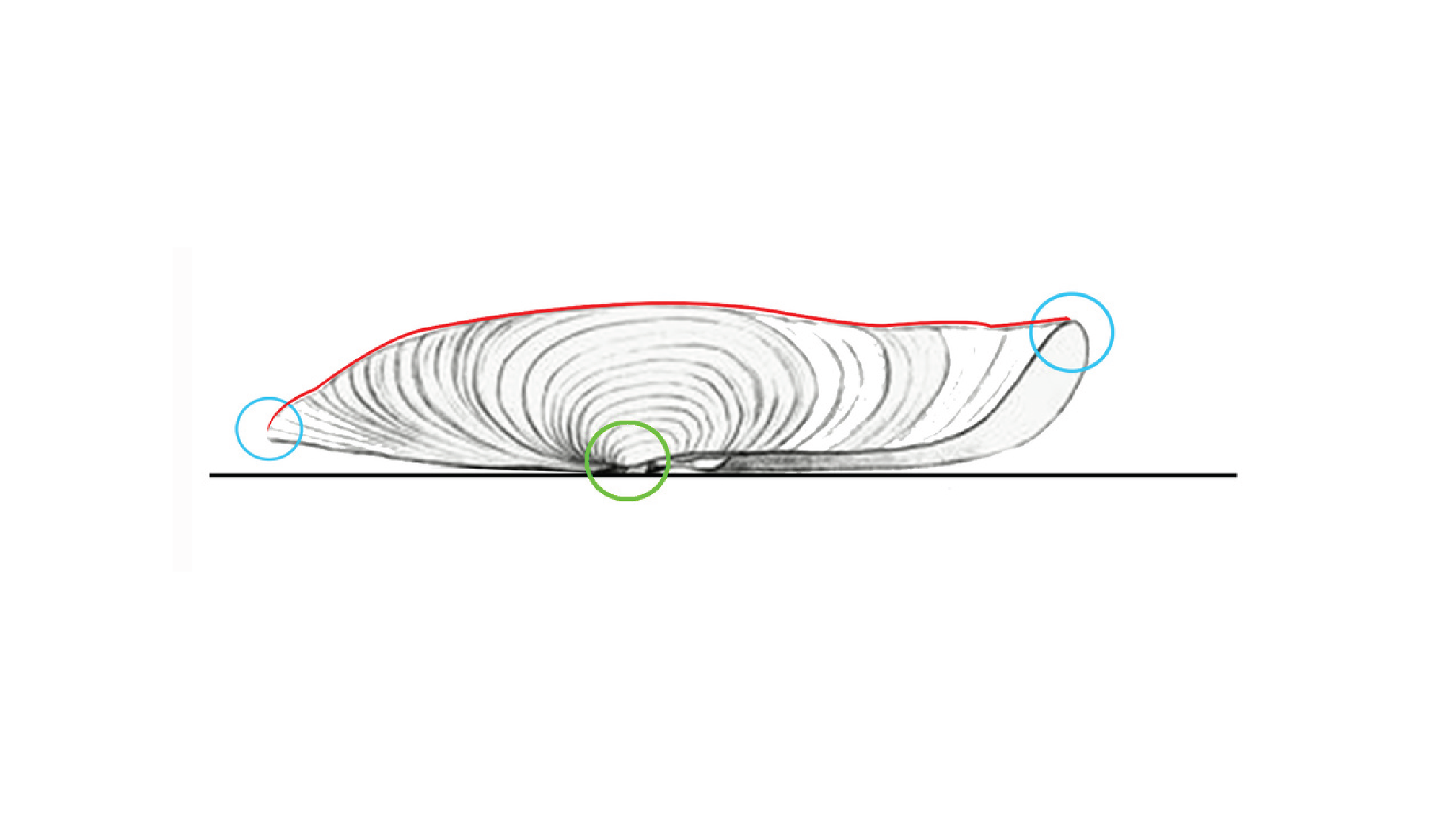 Red Line: Represents the centerline and the highest point of the shell, reaching 5 meters.